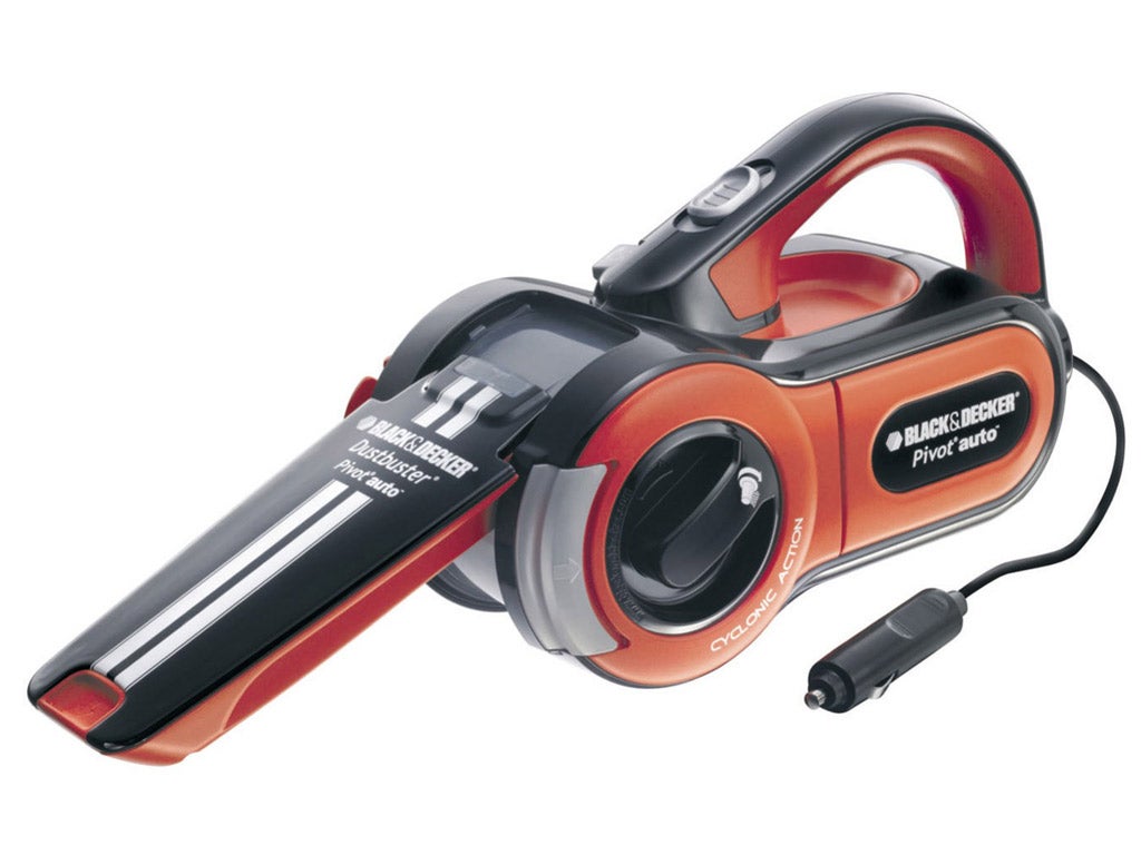 A pivoting nose enables deep cleaning under seats and in gaps, and it runs off the cigarette lighter.