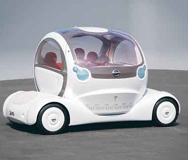 At Nissan, a throng of people pored over a feast of concepts. Weirdest is the Pivo, whose people-carrying pod turns through 180 degrees, so what was the front is now the back. You need never reverse-park or make a U-turn again. There's an electric motor for each axle, and drive-by-wire controls for motor, steering and brakes mean no knitting of mechanicals when the about-face takes place. Cameras create images on the inside of the windscreen pillars to display the view that the pillars would otherwise block.