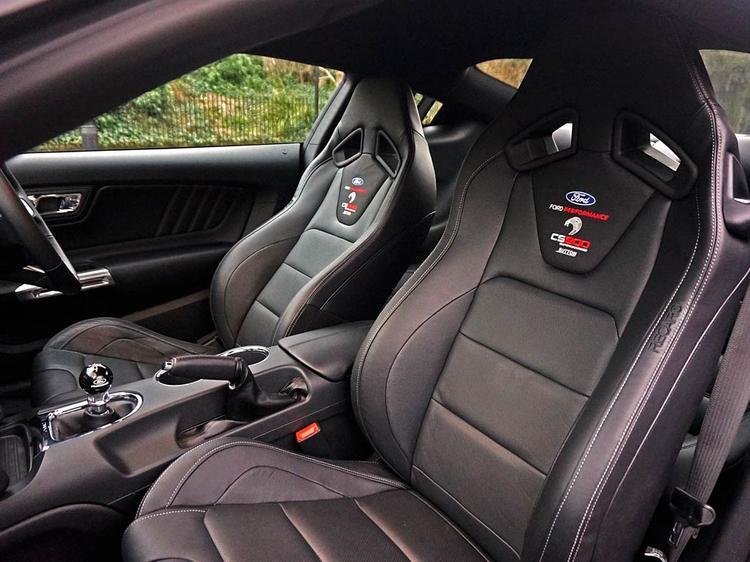 Plenty of carbon fibre in the cabin along with new badges, a gearbox short-shifter (it’s still a manual) and Ford Performance Recaro seats that you can’t officially get on UK Mustangs. This is a show vehicle, so it also sports an earbending 1100w audio setup.