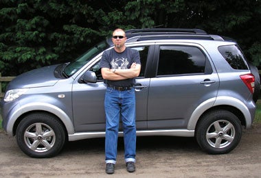 Despite its chunky tyres, permanent four- wheel drive and cute, rugged, small/big-car looks, this off-roader felt like it would struggle on a damp playing-field. The interior can seat five adults comfortably and would be great for long drives if it were not for the noisy, lacklustre engine. I felt the Terios would be better suited to the urban jungle, bought by someone who wants the 4x4 format for shopping and the school run, and has a green conscience. For me, a car's personality comes from its engine, but this one is the mechanical equivalent of tofu. If ever there was a car that screamed, "Please put torquey diesel engine in me," the Terios is it.