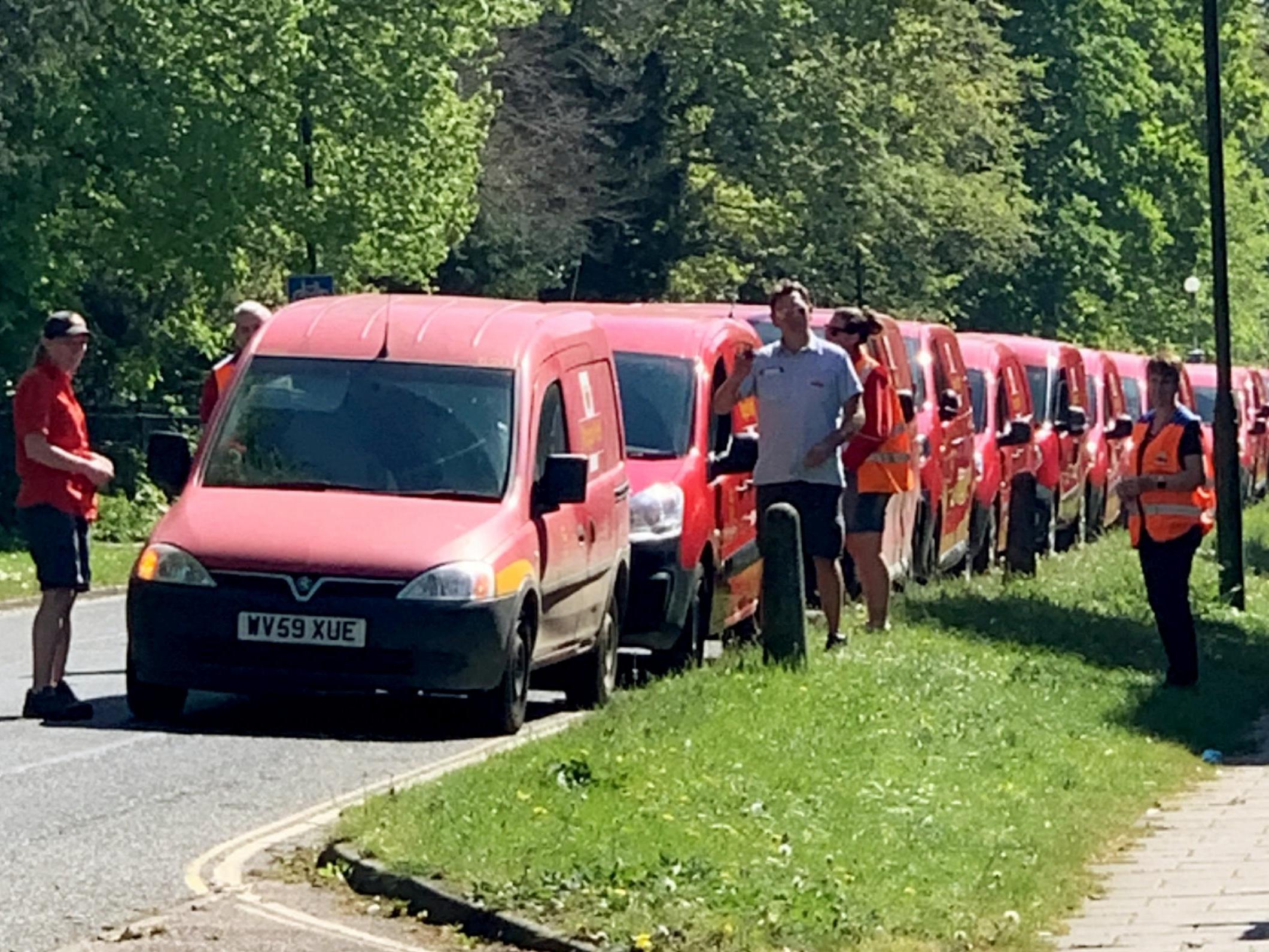 Colleagues drove 14 postal vans behind the hearse at John Brooksbank’s funeral in Horsham, West Sussex on 21 April.