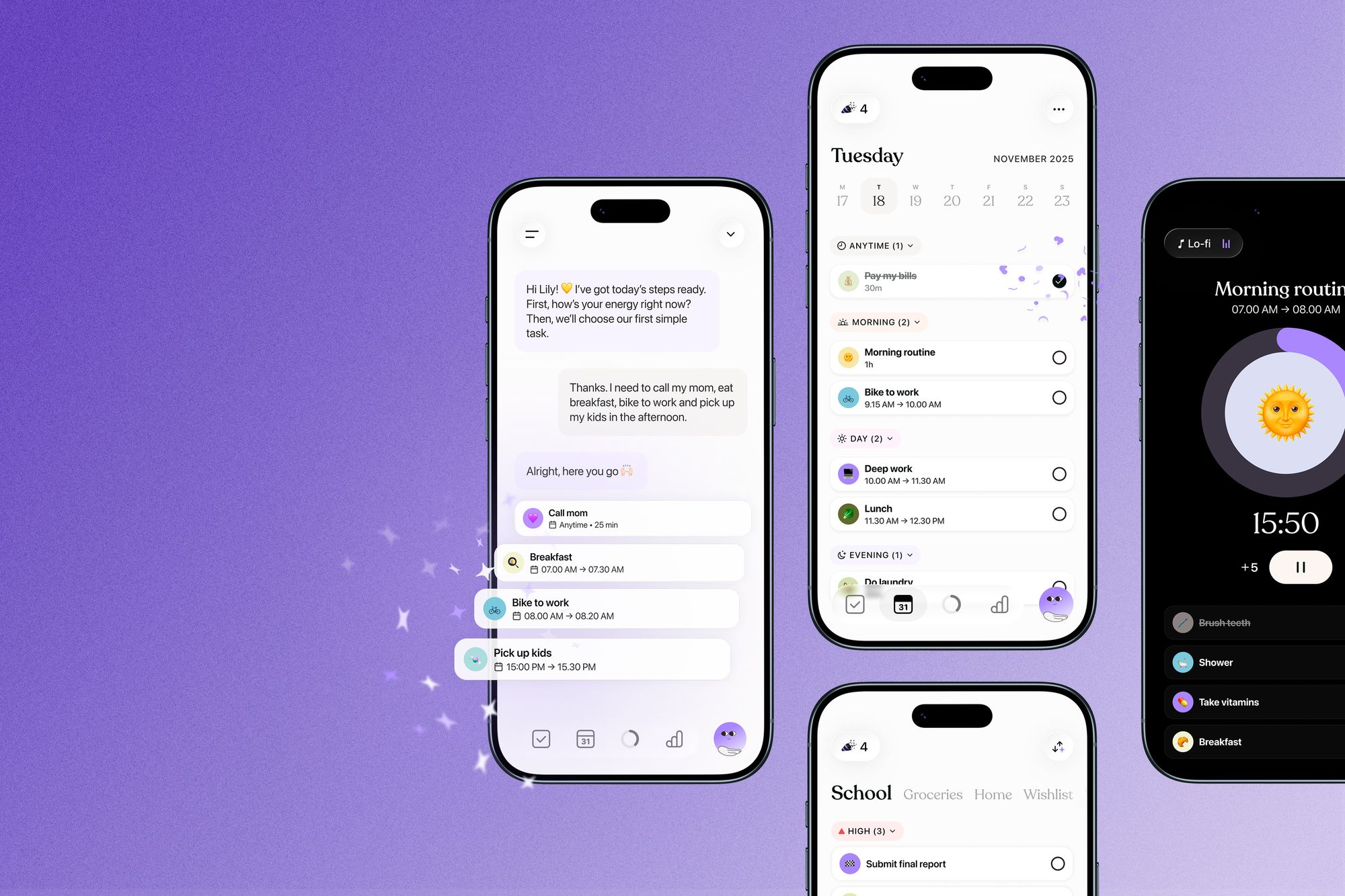 Designed with ADHD in mind, it aims to support focus and organisation through a flexible, intuitive system that adapts to individuals’ needs. Tiimo comprises visual timers, to-do lists, calendar sync, gentle reminders and an AI-powered planning assistant, all in one place. By reducing the cognitive load of planning, it makes routines easier to build and busy days easier to navigate, whether you’re managing work, family life or personal goals.