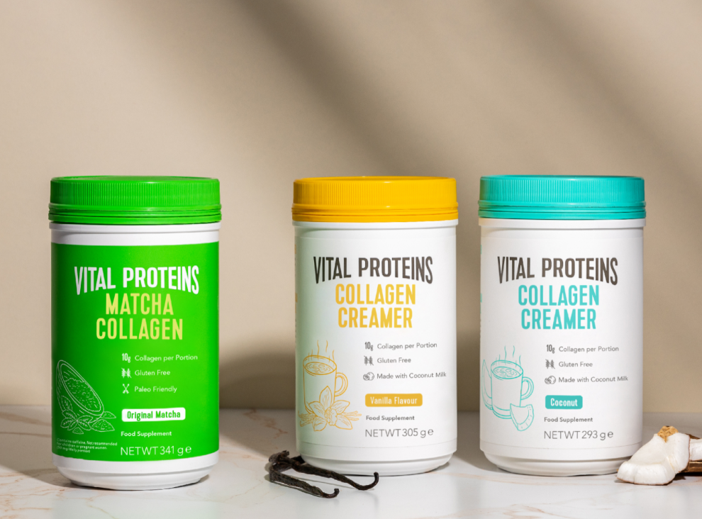 Vital Proteins’ collagen products are formulated with bovine or fish (marine) collagen, both of which are flavourless, odourless and can be easily added to smoothies or soups. You can discover more ways to add collagen to your daily diet here.