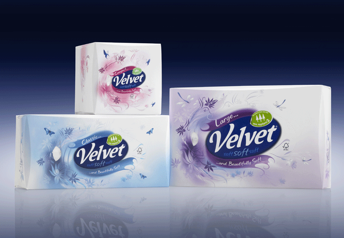 But rather than resorting to cotton wool, try new Velvet Facial Tissues. With a three-ply softness, they’re luxuriously strong, and highly absorbent to suit all uses. They’ll be velvety soft, soft, soft on your skin, giving it the treatment it deserves. And best of all, you’ll be joining Velvet’s Campaign for Trees, as for every tree Velvet uses, they replant another three.