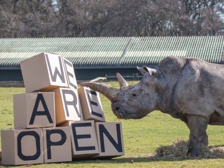 On the morning of the opening, the rhinos at Whipsnade Zoo put on a “smashing opening ceremony” as staff had stacked boxes in their paddock that read “We are open”.