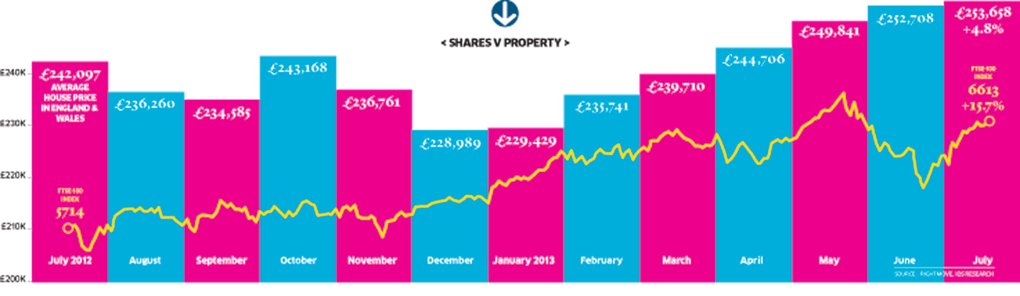 These are heady days for UK property prices and the London Stock Exchange. For the first time in a long while, according to property website Rightmove, house prices are rising once again across the whole of the UK.