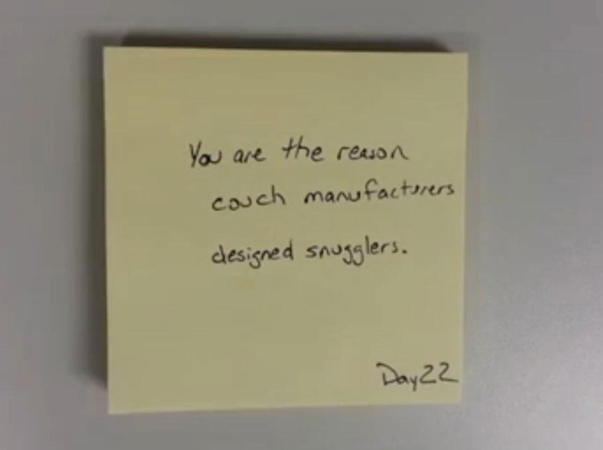 100 days in 100 post it notes: Husband tells wife he loves her every day
