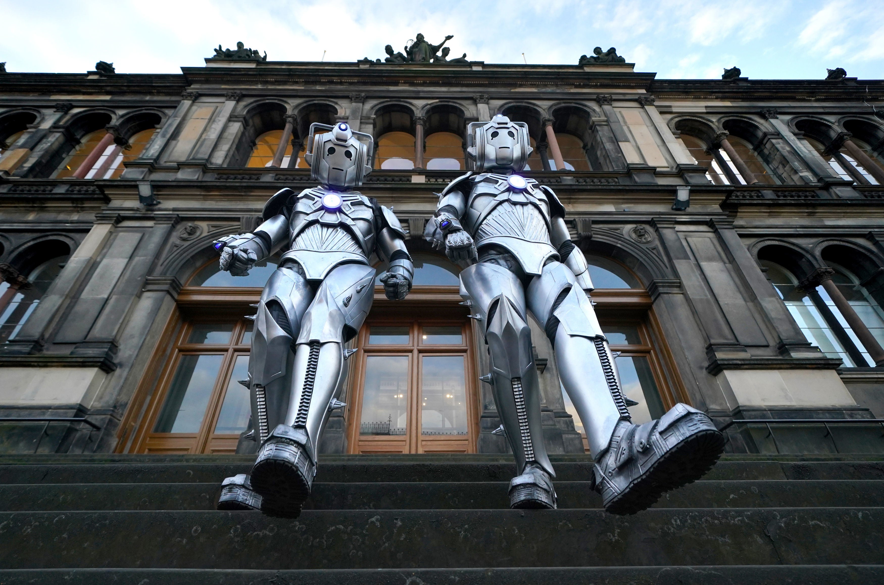 Cybermen at the entrance to the National Museum Of Scotland at a preview for the Doctor Who Worlds of Wonder exhibition at National Museum Of Scotland in Edinburgh.