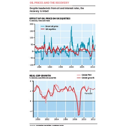 There are, however, always uncertainties ahead. That is the nature of the world economy. We have to remember that it is still in the early stages of a cyclical recovery that normally would be expected to last several years. So yes, at this stage, of course, the expectation for interest rates must be up, particularly given they are starting from such a low base. If everyone expects higher rates, you might as well get on with it. As for the oil price, barring some catastrophe, the inflation it inevitably generates should be containable. Yes, more expensive oil trims growth; but one of the reasons why, even ahead of recent events, the oil price was rising was as a result of that growth. So there are headwinds to be sure and they will contain the recovery. But they don't feel sufficiently strong by any means to plunge us into a double dip.