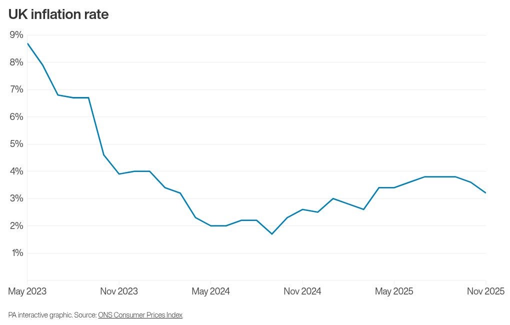 Consumer prices index (CPI) inflation fell to 3.2 per cent in November, down from 3.6 per cent in October, the Office for National Statistics (ONS) said – the lowest rate since March this year and a notably bigger drop than the 3.5 per cent that most economists were expecting.