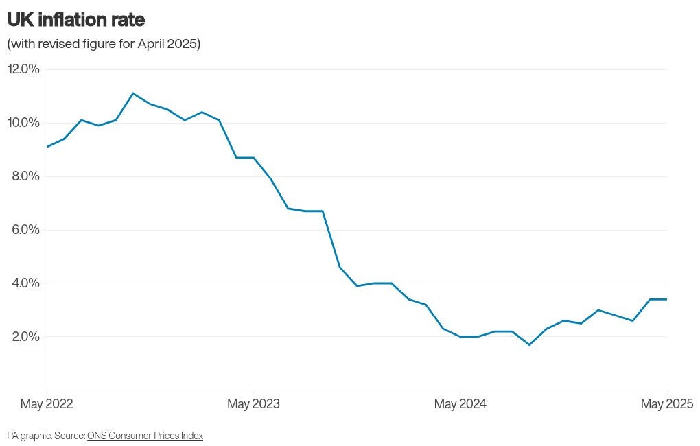 Official data suggests the UK’s rate of inflation eased from 3.5% in April to 3.4% in May – but in reality the figure was unchanged, standing at 3.4% in both months.