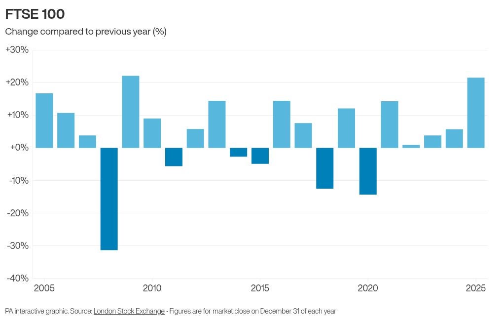 Across the course of 2025, the index of Britain’s biggest public companies rose 21.5 per cent, its best overall annual performance since the aftermath of the global financial crisis in 2009.