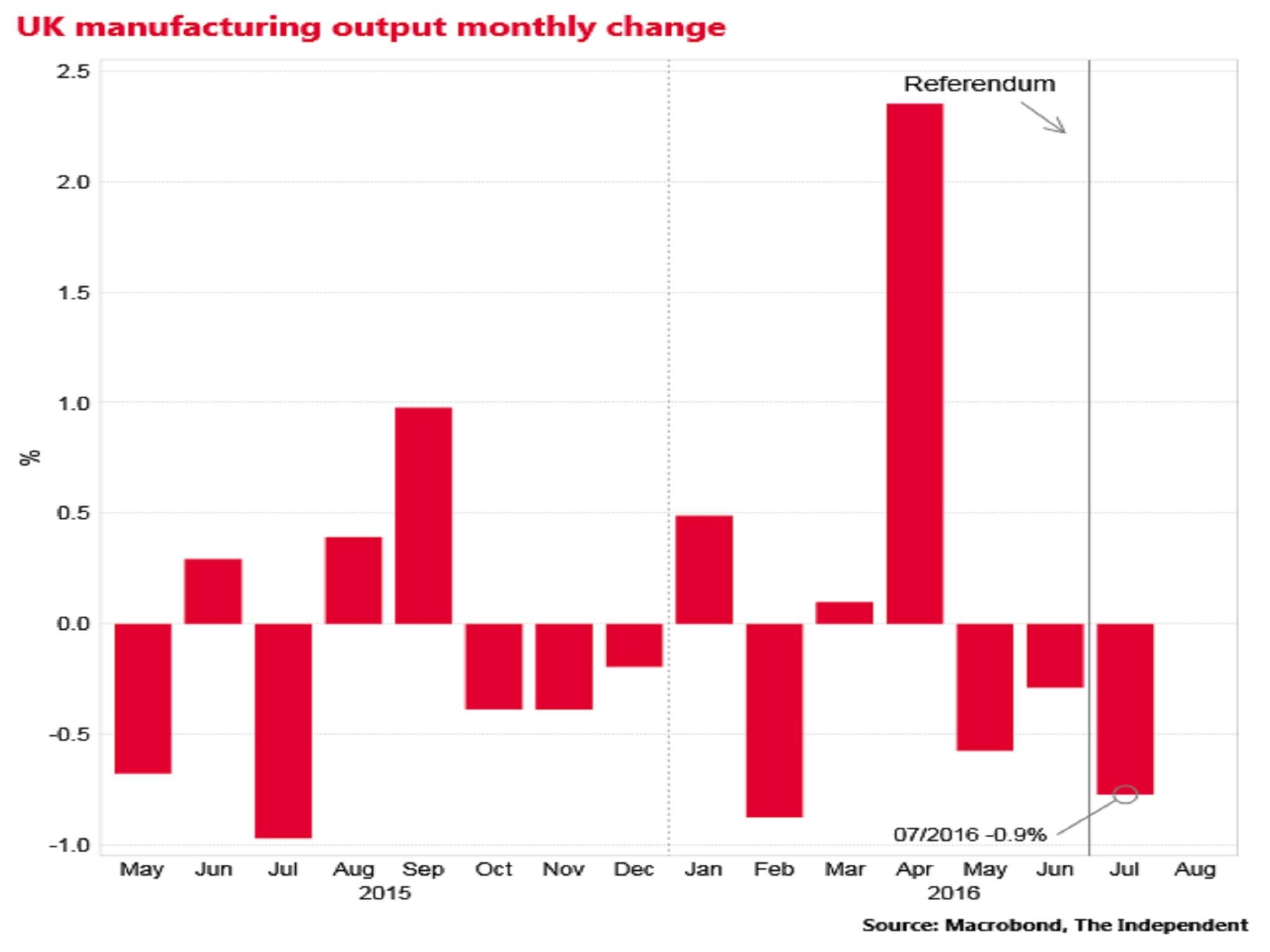Output fell 0.9 per cent in the month following the EU referendum
