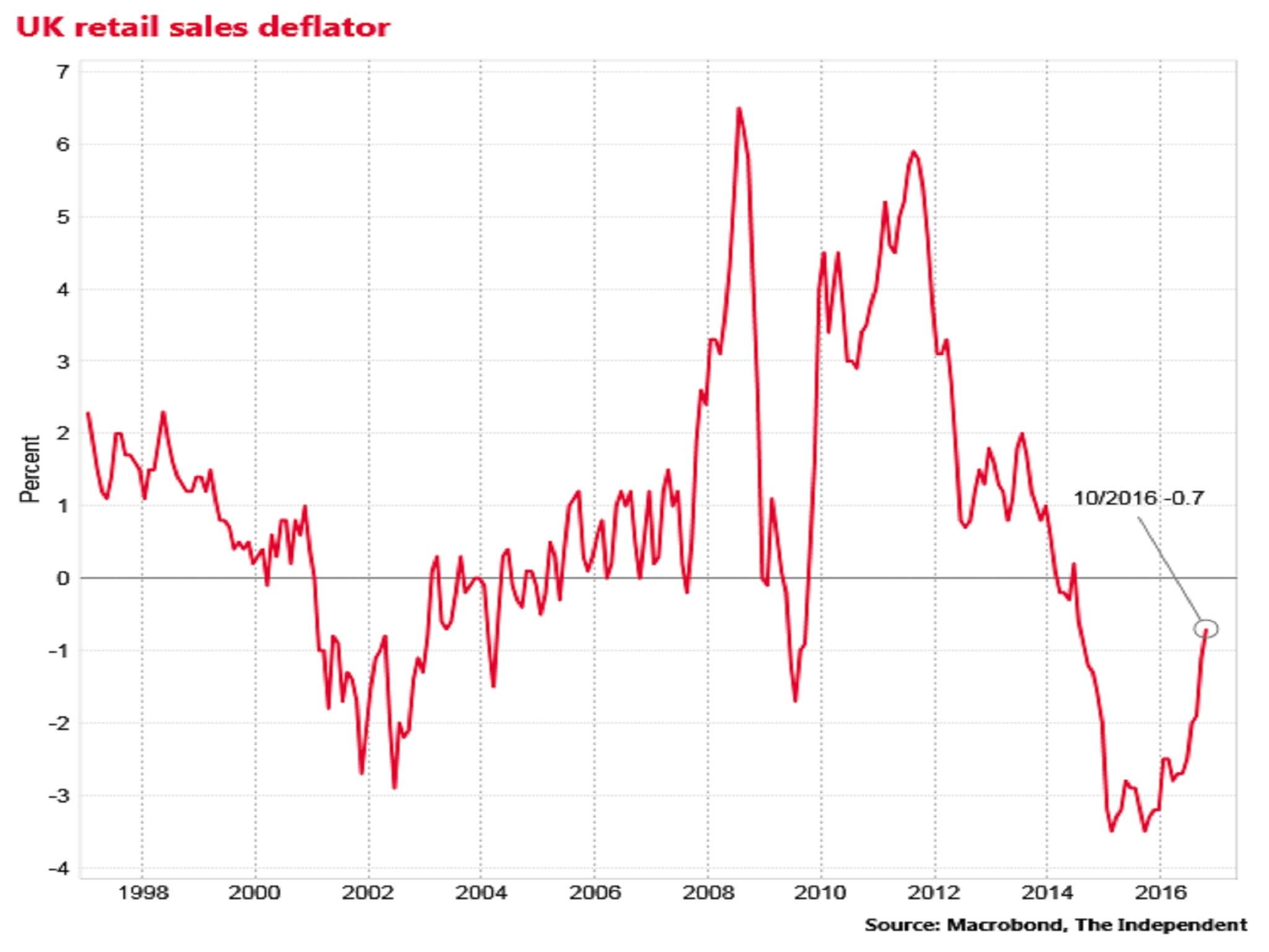 UK retail sales price inflation was still negative in October, with prices 0.7 per cent down on the same month a year earlier.