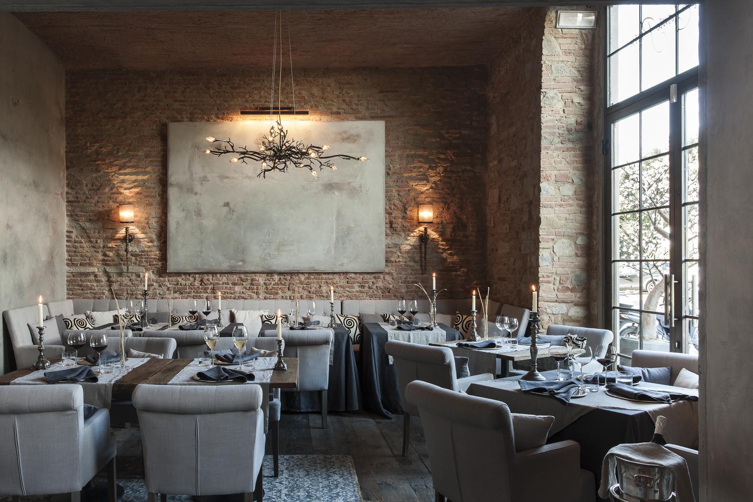 “As most of our ingredients are forested, wild or farmed by us, I wanted the interior to reflect this with rustic wooden and forest green decoration. All materials are natural and most are created by artisans from Tuscany or Europe including the lamps, tables and the stone finishes or paintings on the walls. The restaurant also features sottopiatti (place setting) from the Italian navy,” Jeanette tells me.