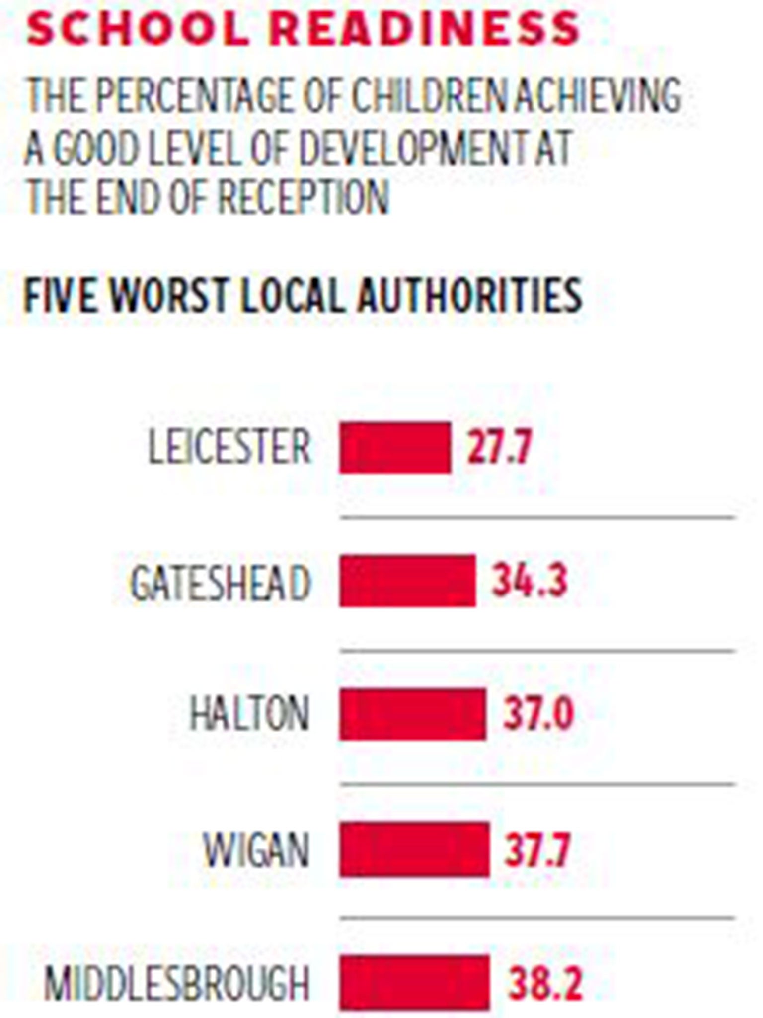 “What we see is the more deprived the area the worse the child development,” he said. “In fact in England as a whole only 52 per cent of children have a good level of development aged five. When we first looked at these figures we assumed there must be something wrong with them. How can it be the case in England, the sixth richest country in the world, that only 52 per cent of children aged five can have a good level of development?”
