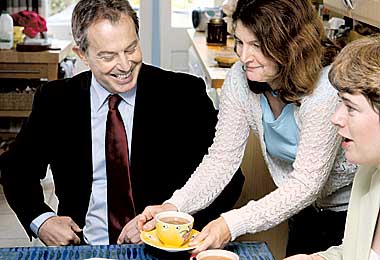 Despite this hectic schedule, however, the Prime Minister found time to drive through the London traffic for a cup of tea and a chat with a south-east London couple and some of their friends. He was accompanied on this photo opportunity by the Education Secretary, Ruth Kelly.