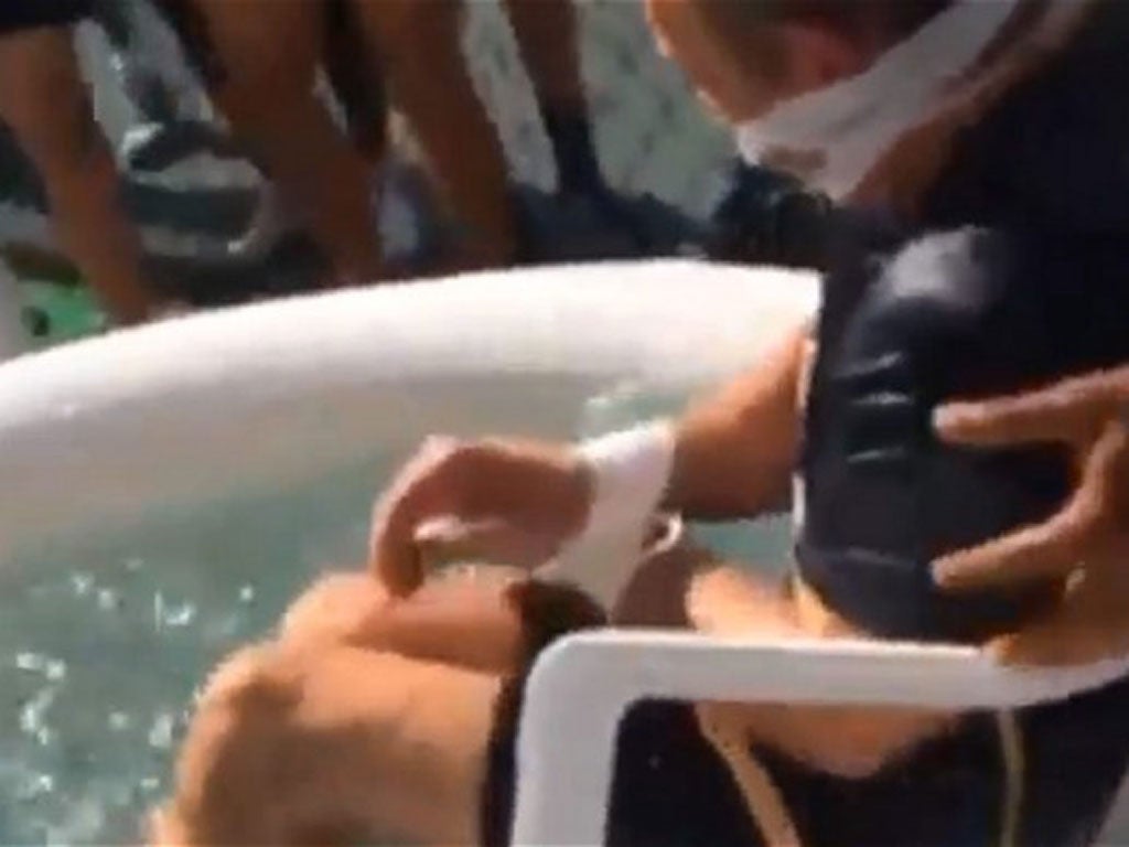 England players threw their masseur Paul Small into ice bath in a prank to celebrate his birthday.