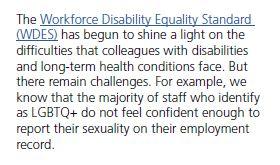 This was the only reference to LGBT+ staff in the document and the unexplained link to those with a disability prompted criticism from a number of senior NHS figures.