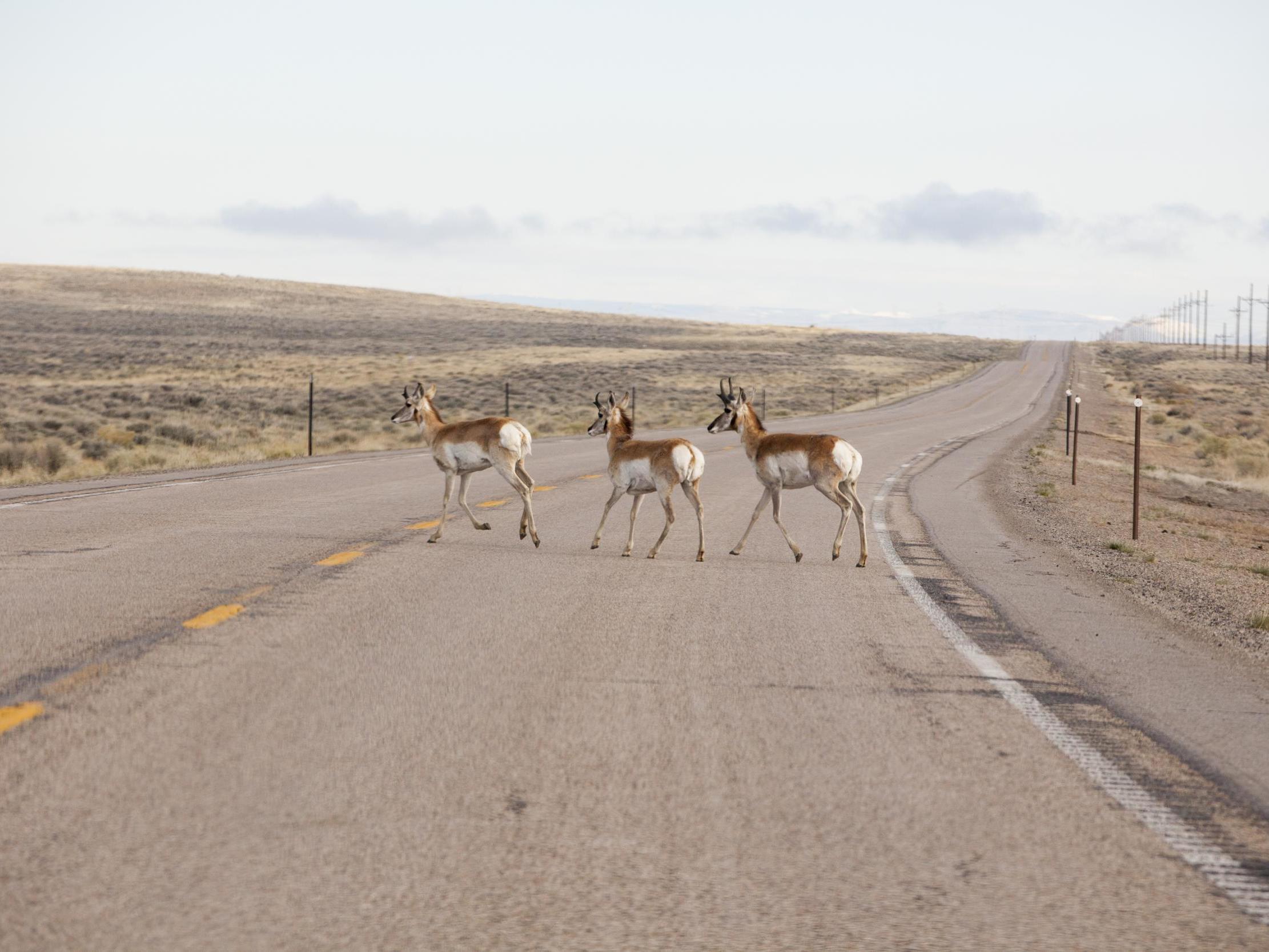 In Wyoming, 15 per cent of all vehicle collisions involve deer, antelope or other big game animals, says Corinna Riginos, director of science at the Nature Conservancy’s Wyoming field office. These 6,000 annual collisions cause $50m (£40m) of damage to cars and loss of wildlife. In 2017, a semi-trailer truck killed 25 pronghorn on I-80 when the truck ploughed into a herd.