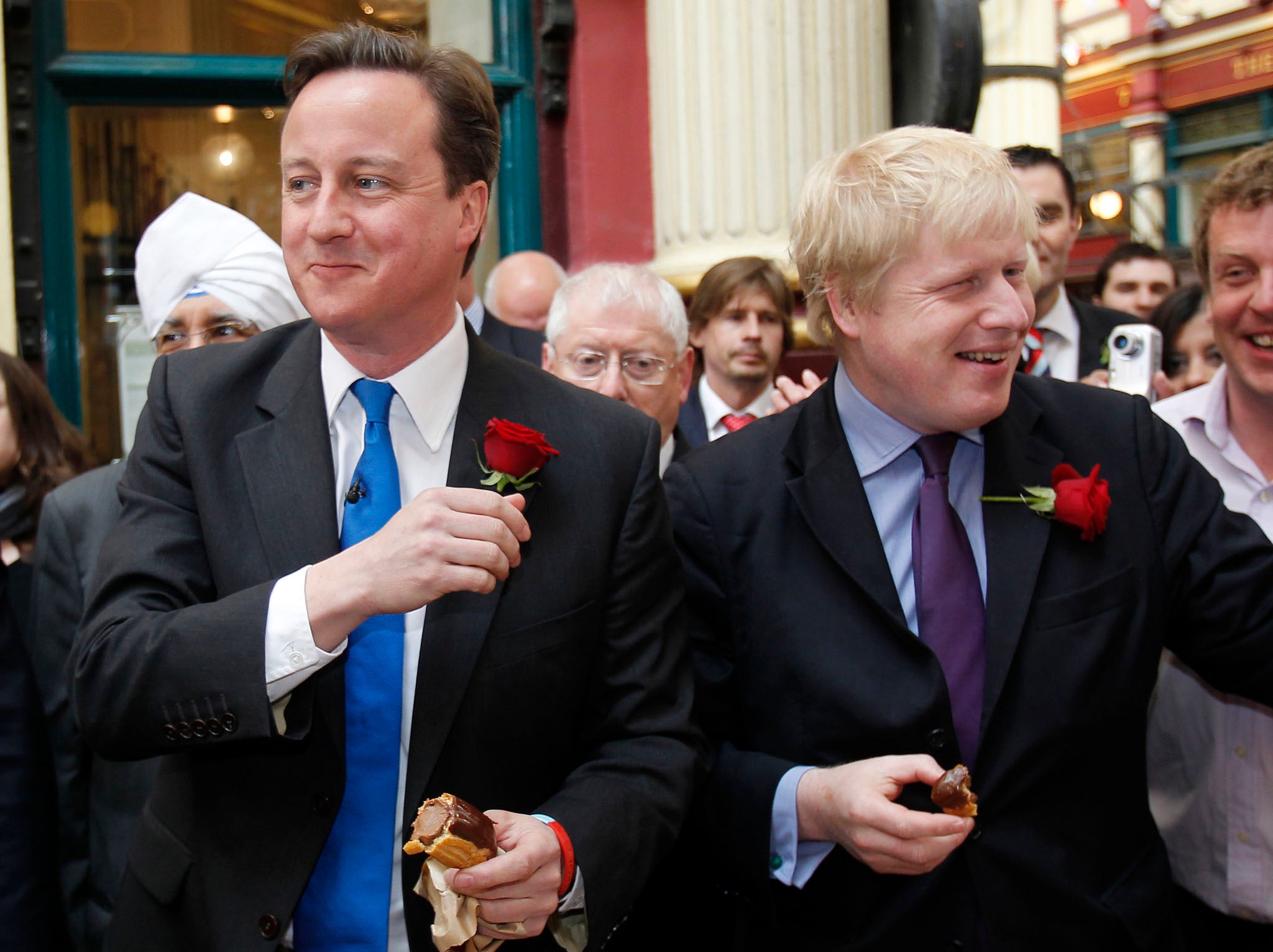 The Mayor of London and Cameron were apparently on their way across town to a campaign event in the capital.