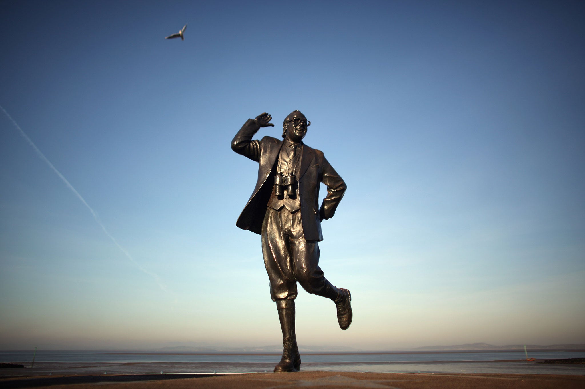 The monument was unveiled by the Queen, who was joined by the comedian’s widow and three children, in July 1999. It has become a popular tourist destination and shows Morecambe in his famous “Bring Me Sunshine” pose.
