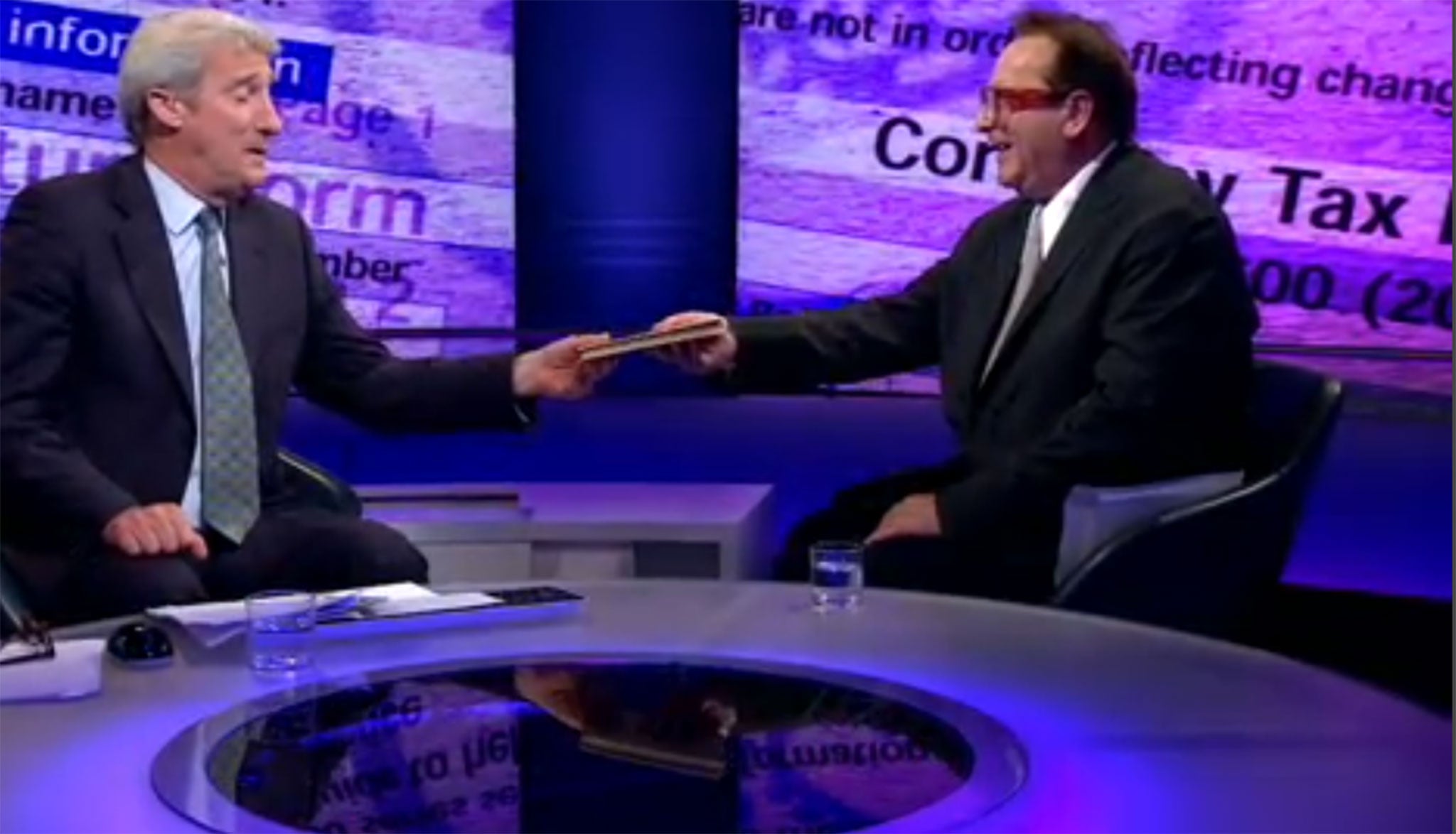 Jeremy Paxman given Newsnight leaving present by Lord Saatchi ‘on behalf of all your victims’