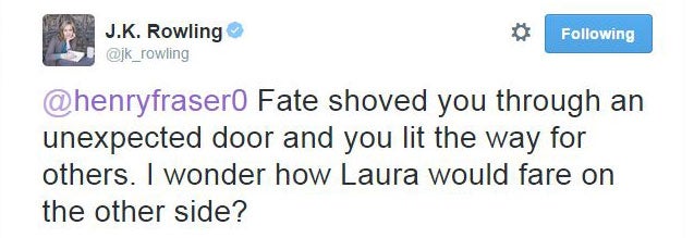 “Fate shoved you through an unexpected door and you lit the way for others. I wonder how Laura would fare on the other side?”