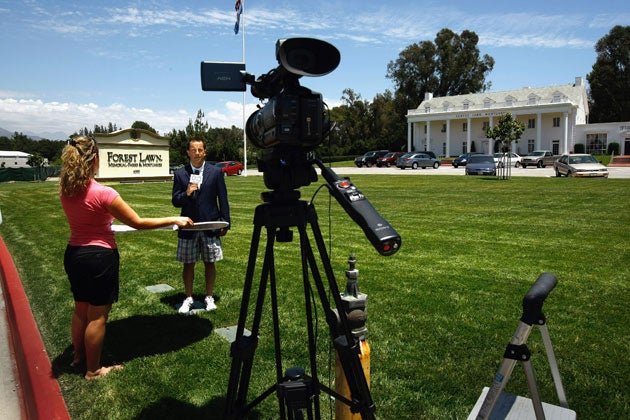 The singer's funeral is expected to take place at Forest Lawn Memorial Park in Hollywood on Tuesday. A memorial service will also take place that morning at the Staples Center, a Los Angeles sports and entertainment arena owned by AEG, which was promoting Jackson's scheduled comeback concerts in London. More than 1.2 million people around the world registered online for 17,500 free tickets for the downtown memorial. Within minutes of the lottery opening for business, its server crashed.