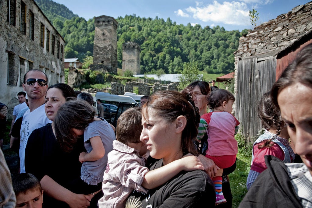 Campaigning in Georgia is not for the faint-hearted. At one point we climb for an hour up a sheer path to an 11th-century church perched on top of a mountain, where a religious festival is under way and hundreds of locals and visitors are jostling both to make it up to the church, and to get a glimpse of the visitor. Save for the bodyguards and the motorcade of black limousines waiting below, the scene could be straight from the Middle Ages. Atop the hill, candles are lit, bells rung by hand, goats are being skinned and stewed in giant pots, and a strong-man contest is under way involving the lifting of giant rocks. Ivanishvili, who hardly breaks a sweat during the climb in the summer sun, stops to hear the concerns and complaints of ordinary Georgians. Mainly they moan about a lack of jobs and investment. "We don't know much about him, but we are willing to give him a try. He can't be worse than the others," says 82-year-old Eduard, a local villager.