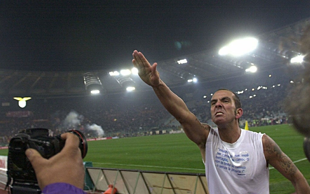 Di Canio's ultimate allegiance has always been to Lazio; so much so that, one day in January 2005, while celebrating a goal in front of their disconcertingly right-wing fans, he was moved to the point that he raised his right arm to join them in their trademark Roman salute. The gesture was an ancient historical practice, Di Canio claimed, even if, to the untrained eye, it was indistinguishable from a more recent, Germanic sign of allegiance. He repeated the salute twice more in Lazio colours, and as a result has been branded by some as an ideologically committed, fully fledged fascist activist. When Swindon Town chairman Jeremy Wray showed the initiative (and, it has to be said, the courage) to appoint Di Canio, one of the club's sponsors, the GMB union, withdrew its support, reluctant to be associated with a man some still perceive, mistakenly, as a neo-Nazi.