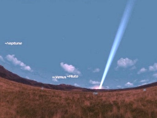 By late November it will be visible to the unaided eye just after dark in the same direction as the setting Sun. Its tail could stretch like a searchlight into the sky above the horizon. Then it will swing rapidly around the Sun, passing within two million miles of it, far closer than any planet ever does, to emerge visible in the evening sky heading northward towards the pole star. It could be an "unaided eye" object for months. When it is close in its approach to the Sun it could become intensely brilliant but at that stage it would be difficult and dangerous to see without special instrumentation as it would be only a degree from the sun.