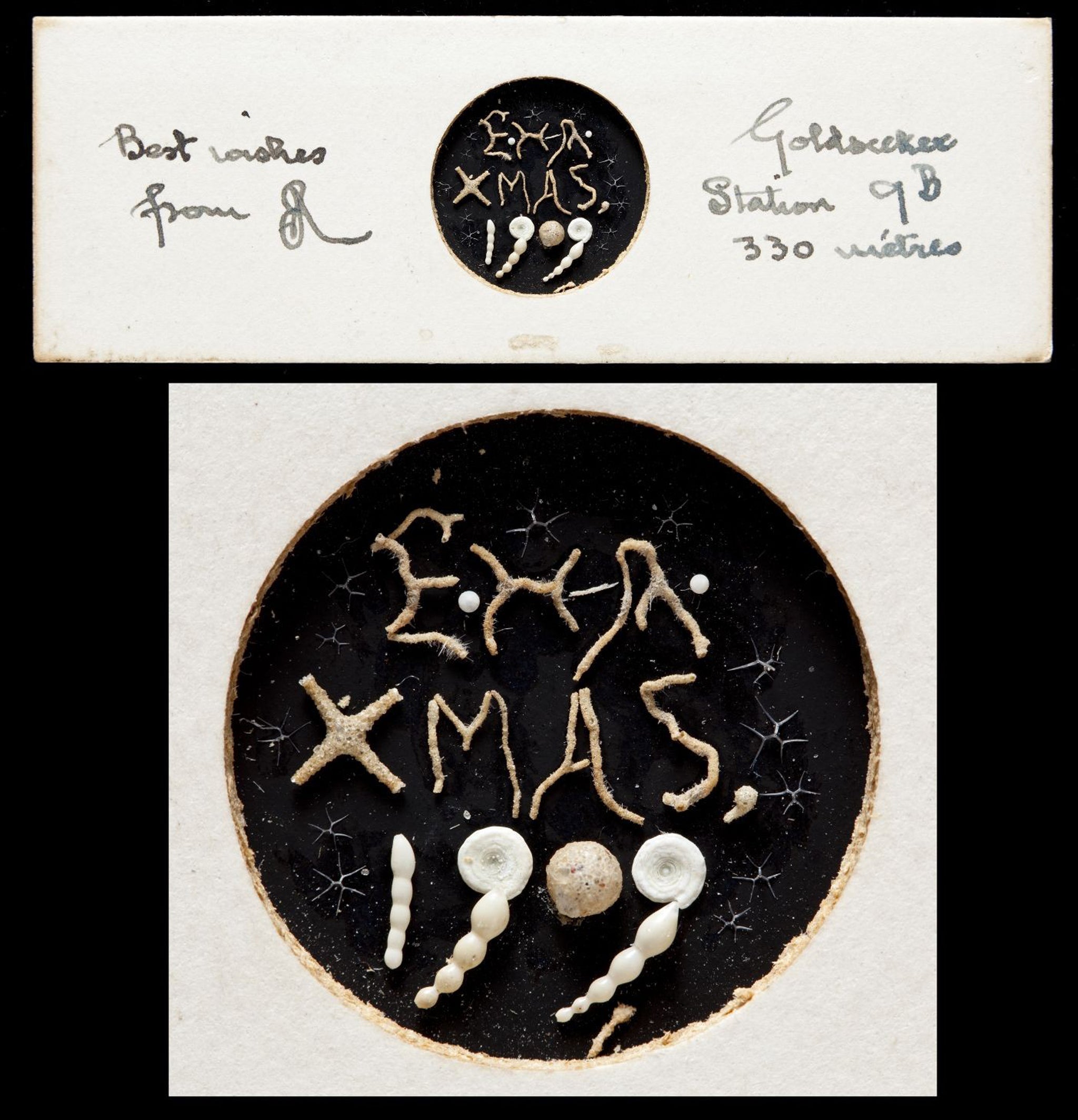 Some of the slides spell out simple messages. Some were given by one of the friends to the other as “thank you” slides, and some were lovingly prepared as miniature Christmas presents – one celebrates “Xmas 1912” spelt in tiny shells.