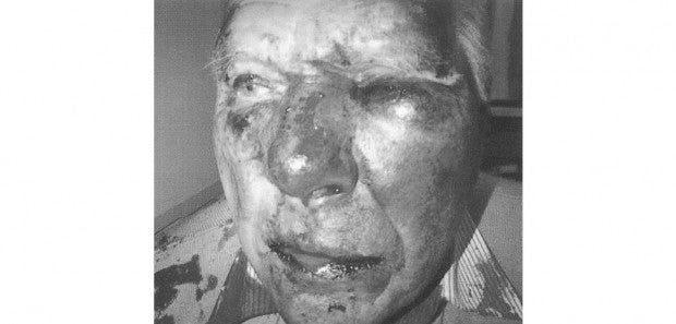 Nottinghamshire police hunting intruders responsible for a horrific attack on a couple in their home, have taken the decision to release black and white images of the man's "horrific" injuries because the colour picture is too graphic.
