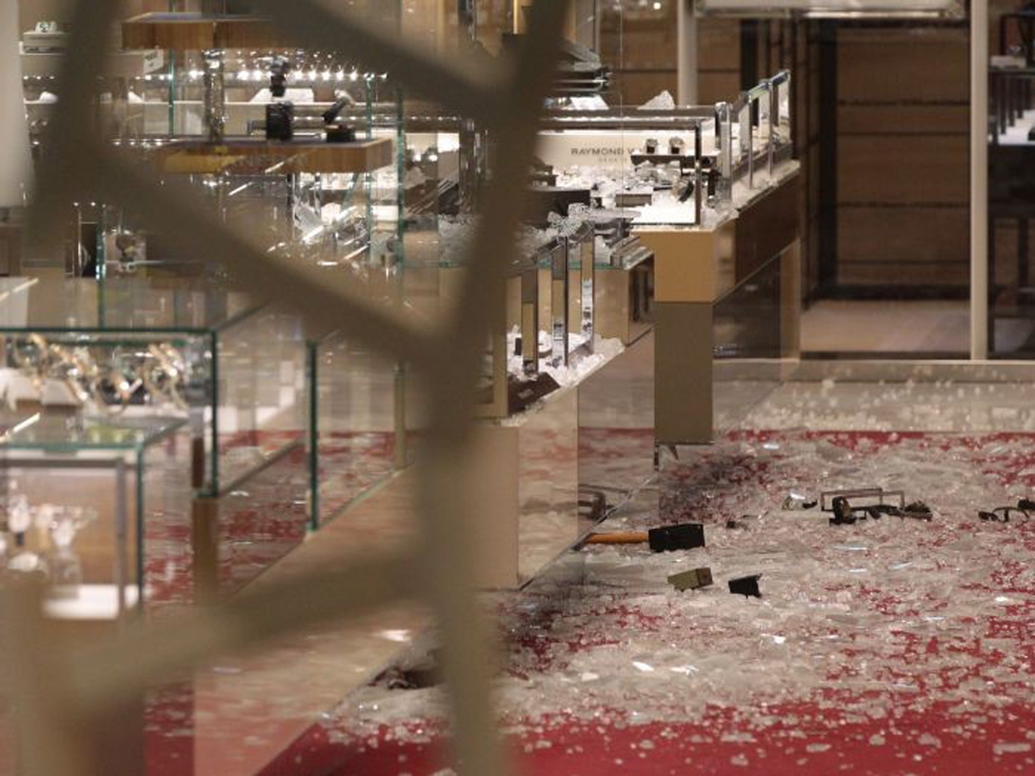 Scotland Yard said a group of six men, all dressed in burkas, entered the store at about 8.30pm, just before closing time on Thursday. Witnesses said it appeared the men had disguised themselves as rich Arab women, with some carrying designer handbags. They mingled with hundreds of shoppers before producing axes and smashing their way into display cabinets, stuffing dozens of watches worth tens of thousands of pounds into bags. They fled and jumped on to at least three waiting motorcycles.