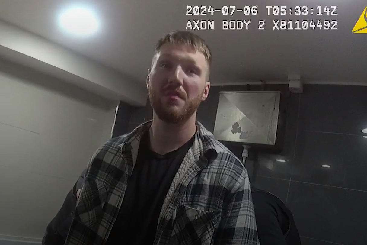 Video released by West Mercia Police after Harvey was jailed showed him being arrested by officers at the station at 6.32am in July last year.