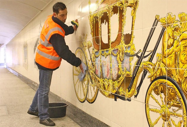 "We set up this scheme because we wanted get the place sorted out and looking nice for the royal wedding," says Lisa Houslin, the Community Payback Scheme Manager in charge of the project. Over the next four weeks offenders with convictions ranging from driving offences to public disorder will clean the pedestrian tunnels beneath Hyde Park Corner, a key thoroughfare for the expected millions who will arrive from all corners of the globe to witness the nuptials of Prince William and Kate Middleton.