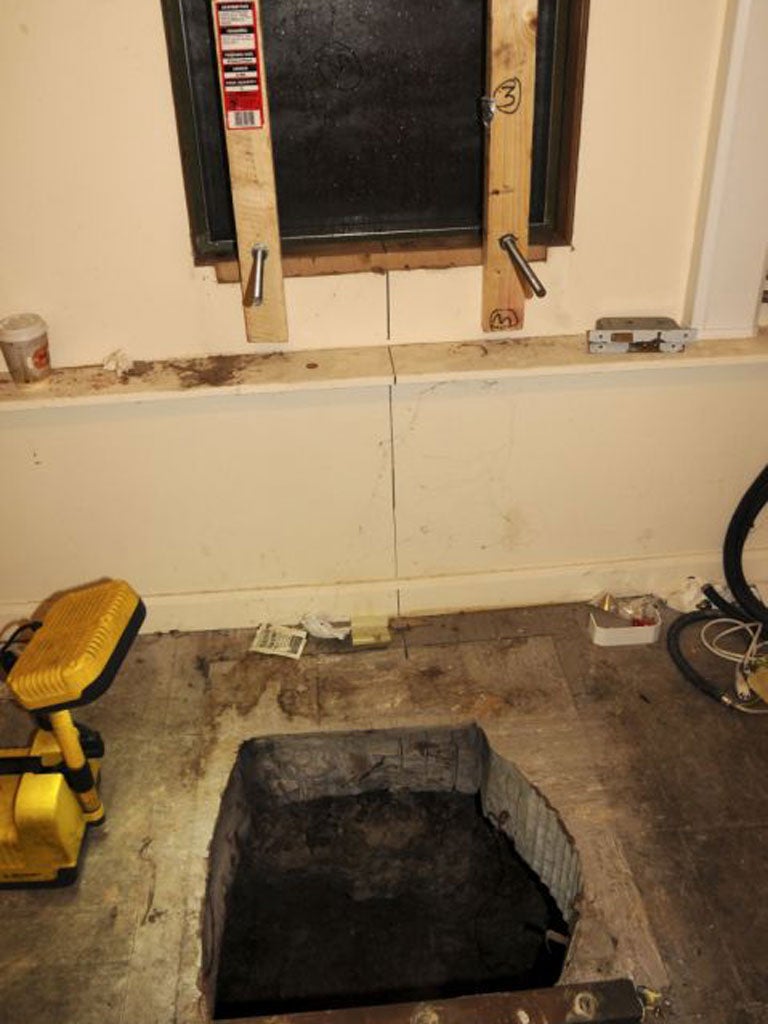 "While they were digging the tunnel they drilled holes through the floor.