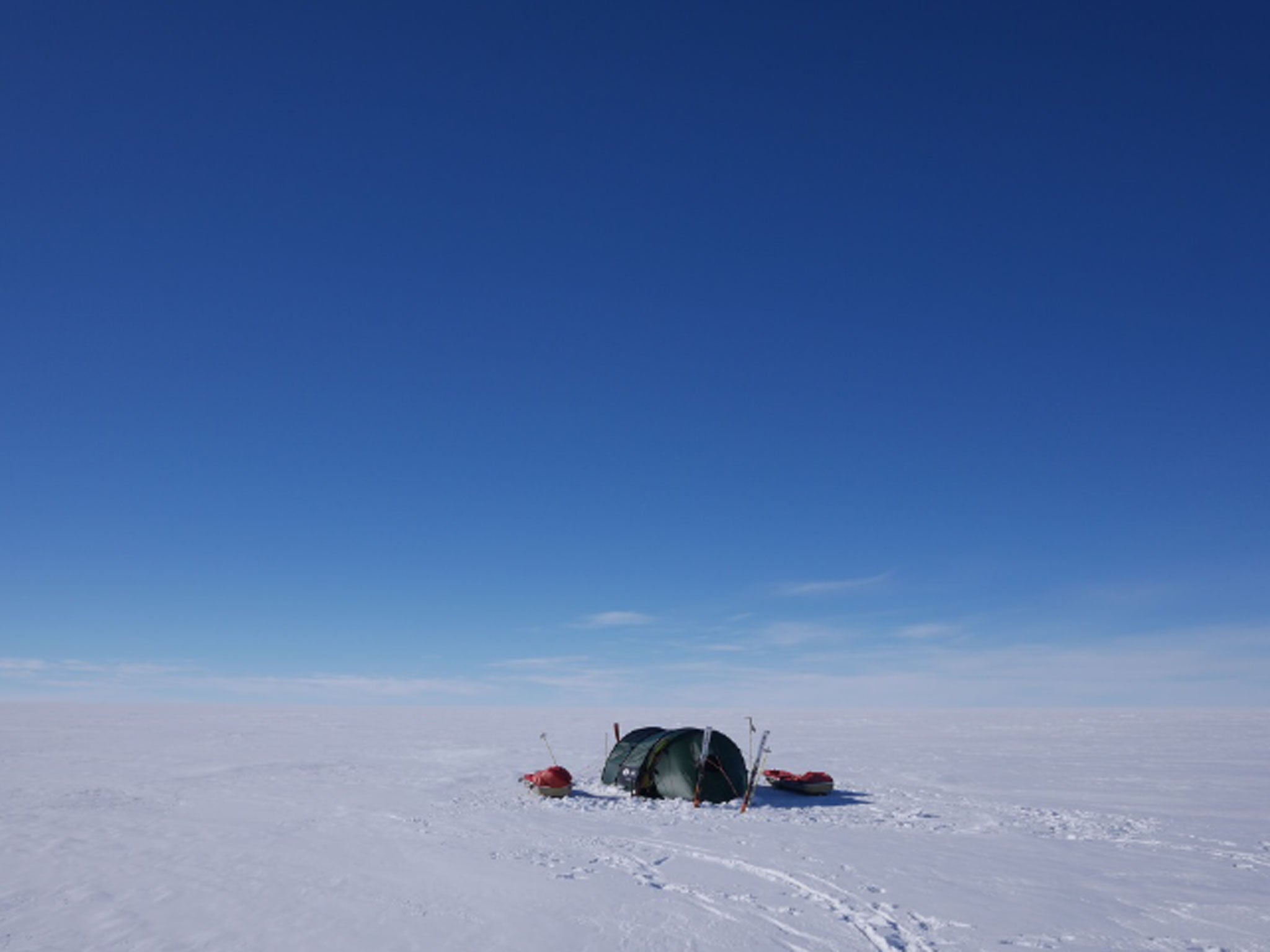 Speaking to The Independent via satellite phone from the South Pole today Mr Parker added that he was “exhausted” and “emotional” after his journey but would be spending the day like “everyone else eating and sleeping”. He’ll be staying in his tent, however his support team at the Pole has set up a stove and a chair, which he described as “wonderful luxuries”.