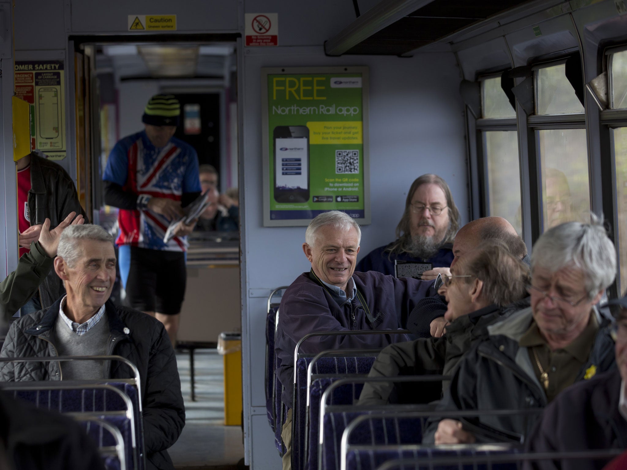 Steve Whittaker, 63, a retired diesel engineer from Stockport, has been coming this way for years. “I went on my honeymoon to York on this train in 1973,” he says. “If you come regularly you get to see the same people,” he explains.