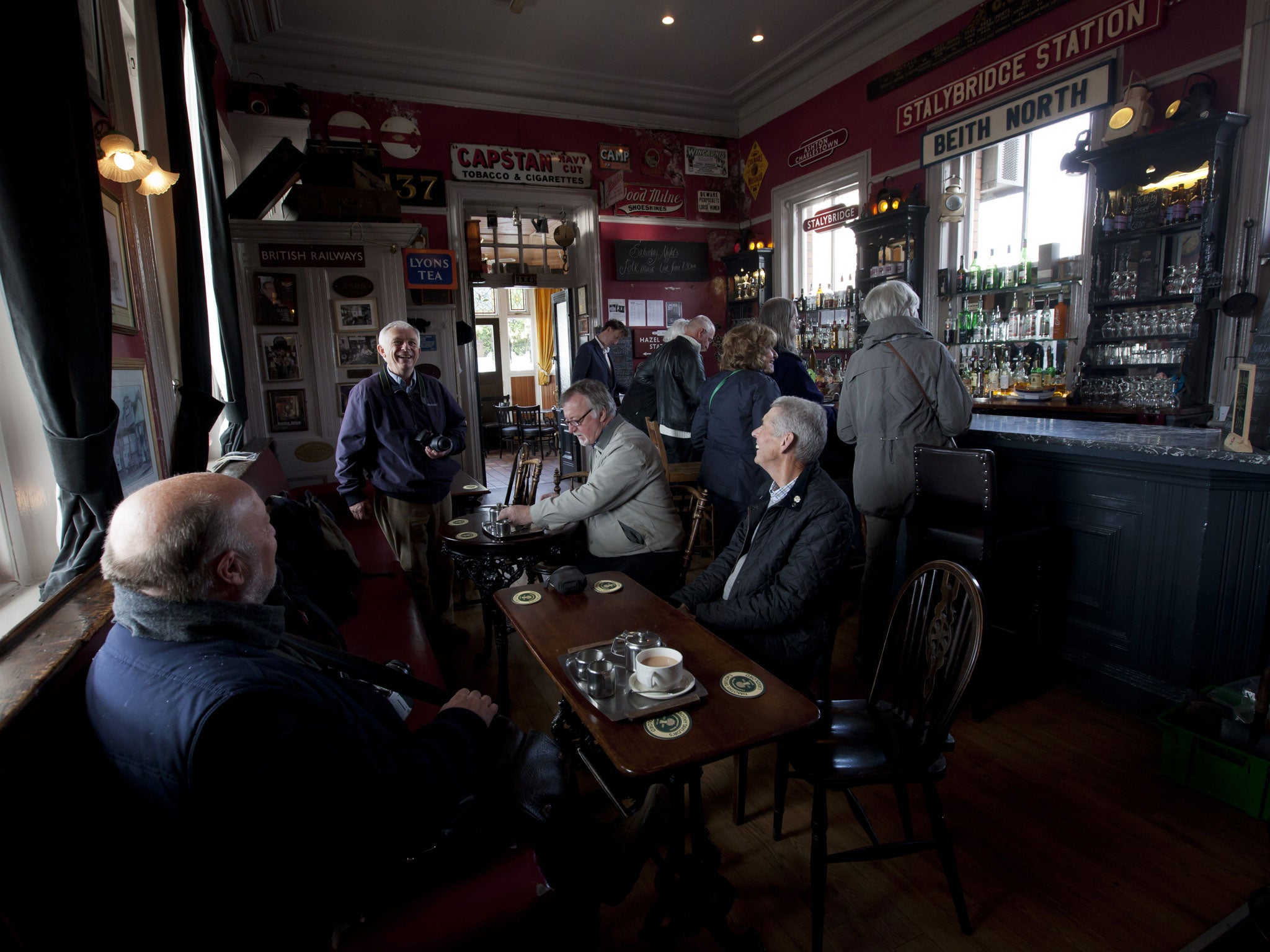 Mr Whittaker and his friend, retired teacher Martin Stuart, 54, are bound for the buffet bar at Stalybridge station which serves a mean full English breakfast and keeps 10 real ales on tap. “It’s friendly, it’s a nice trip and it’s a bit of railway time and we get a great breakfast. This is the world of retirement. It’s really very pleasant,” says Mr Stuart.