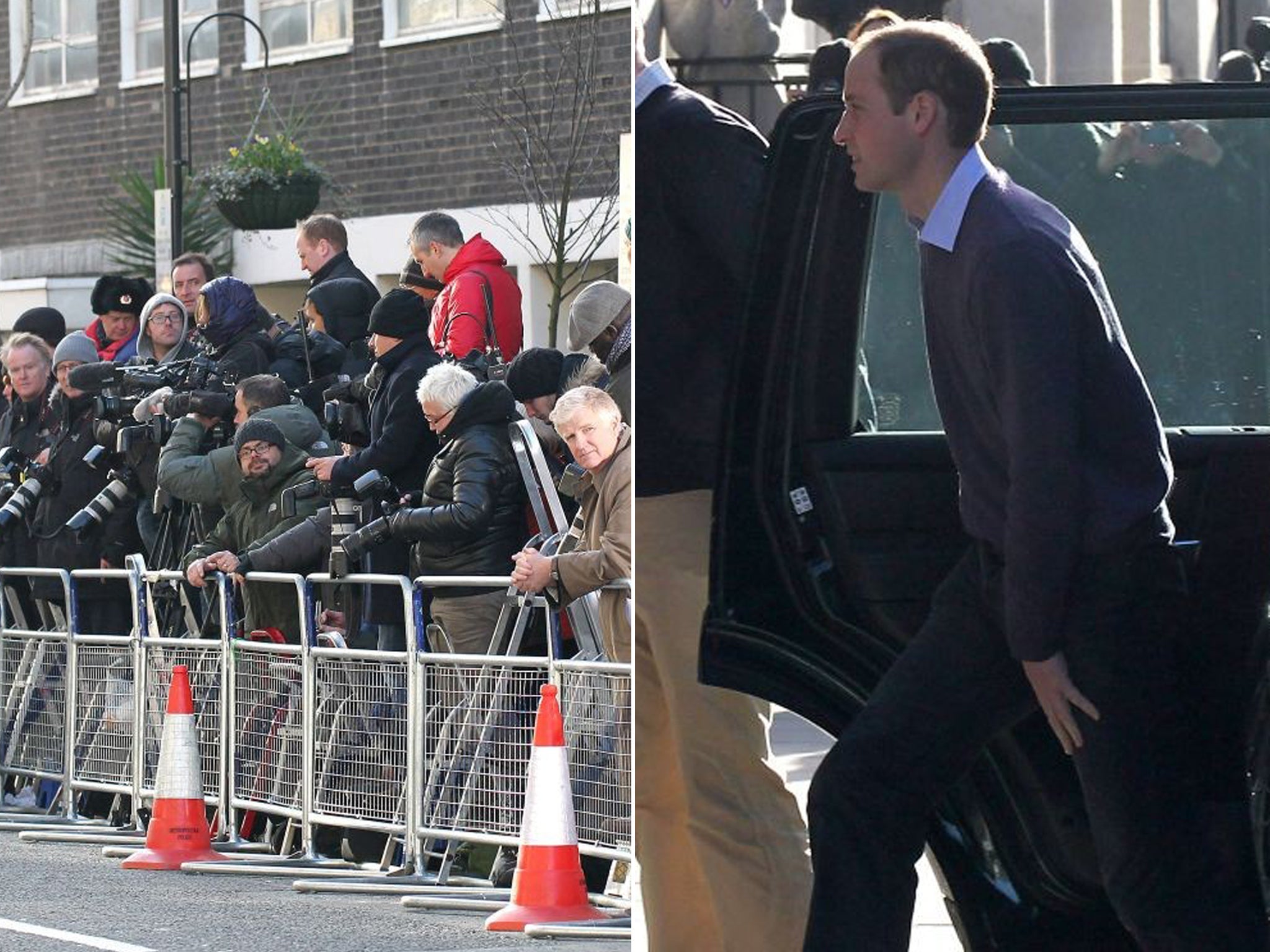 Around 100 photographers, television crew members and journalists grew frustrated as absolutely nothing happened apart from Prince William’s dash into the building at 11.30am.