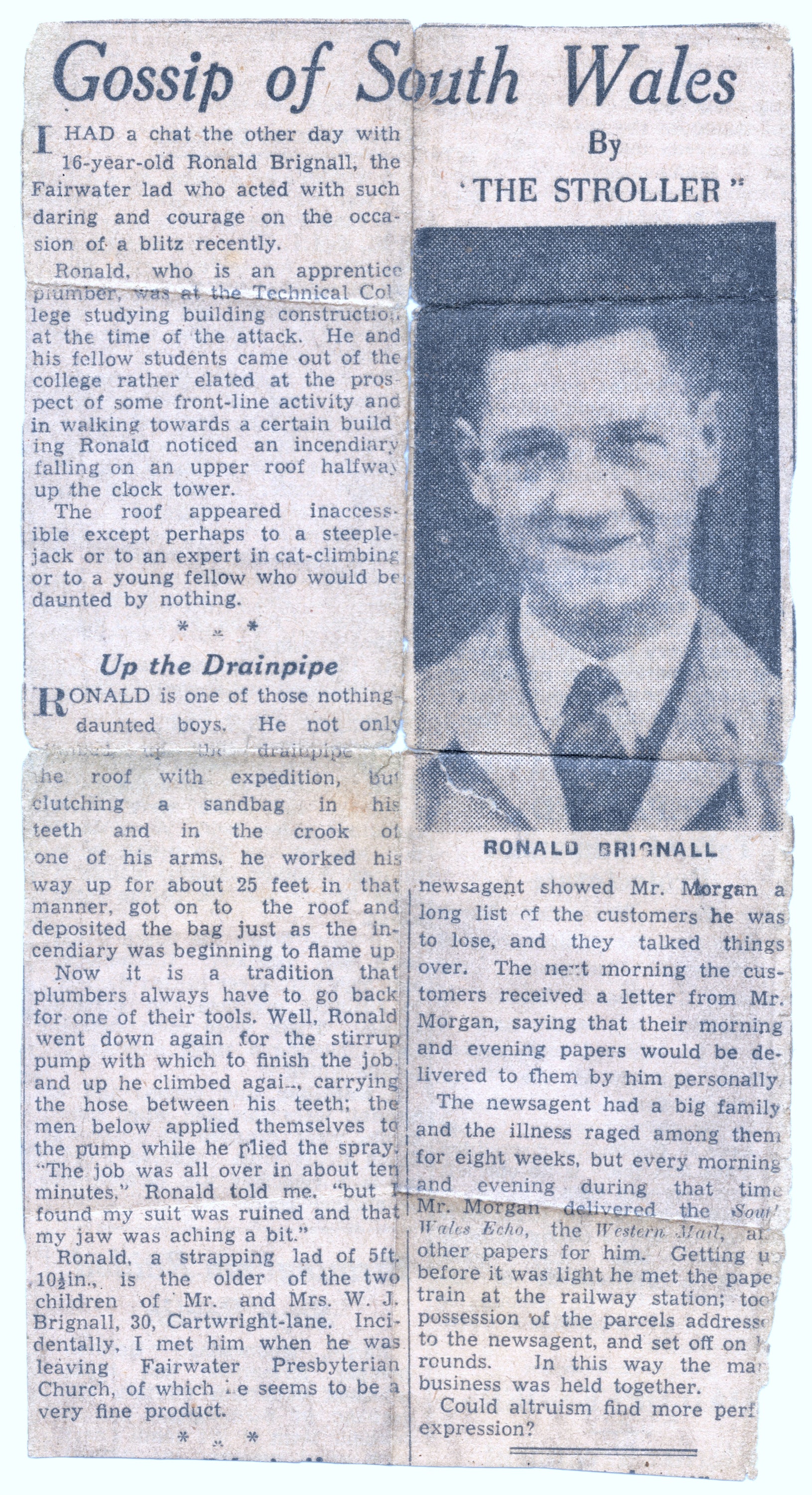 “I know this is a rather belated honour but it is no less heartfelt and I assured Mr Brignall and his family that the whole of Cardiff expresses its gratitude for the heroics he performed on that day in 1941.”