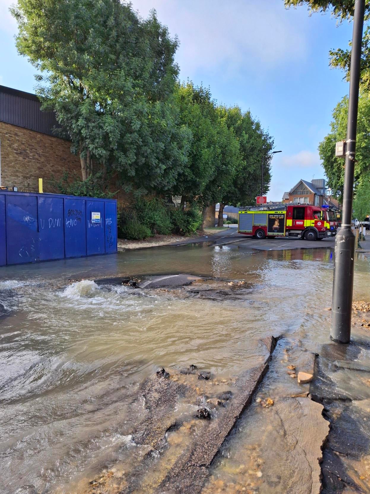 A second photo showed a significant portion of the road flooded, with fire engines positioned by the flooding.