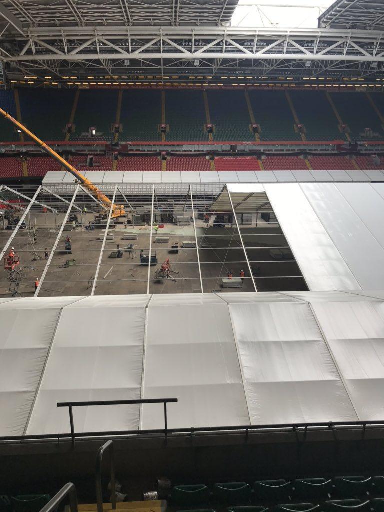 Images showed vast tented structures appearing to run the full length of the pitch, which only weeks earlier had hosted Six Nations rugby matches.