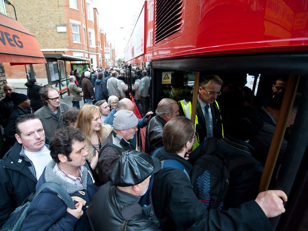Waiting just down the road was an old-style Routemaster bus, chartered and dressed up by the transport union TSSA to protest against the new vehicle. “Bus fares up 50 per cent – sack Boris,” demanded a poster.