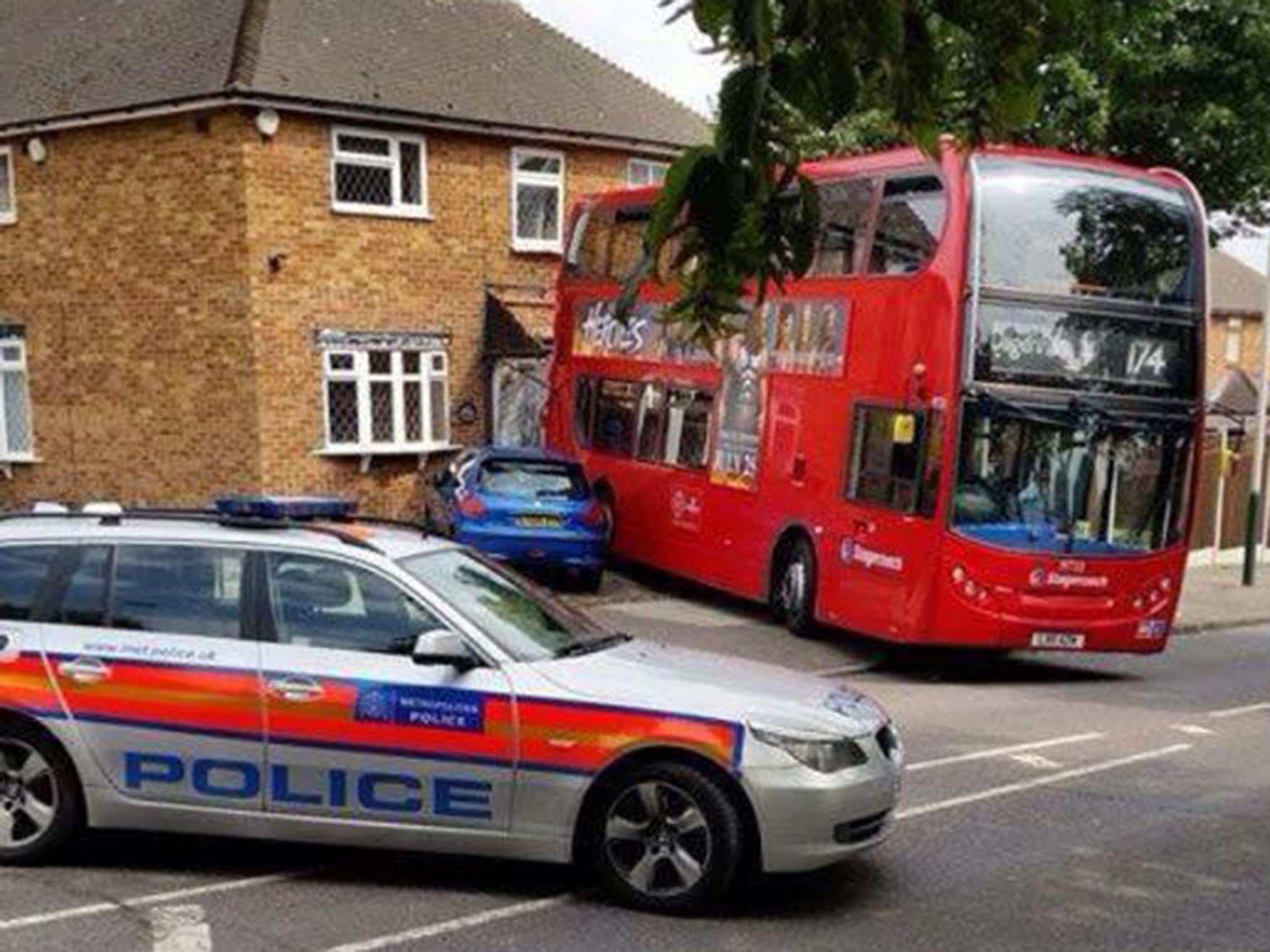 The owners of the house on Dagenham Park Square, Harold Wood, east London, are currently on holiday, but their double-glazed porch has been crushed by the bus, with a blue hatchback parked in the property’s drive reportedly severely dented.