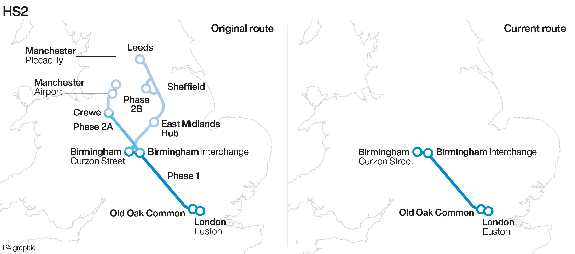 The HS2 section that is still going ahead will run from London to Handsacre in Staffordshire with a spur to Birmingham, but delays and spiralling costs mean no target date has yet been announced for its opening.