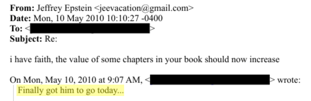 Epstein responded, saying: “I have faith, the value of some chapters in your book should now increase.”
