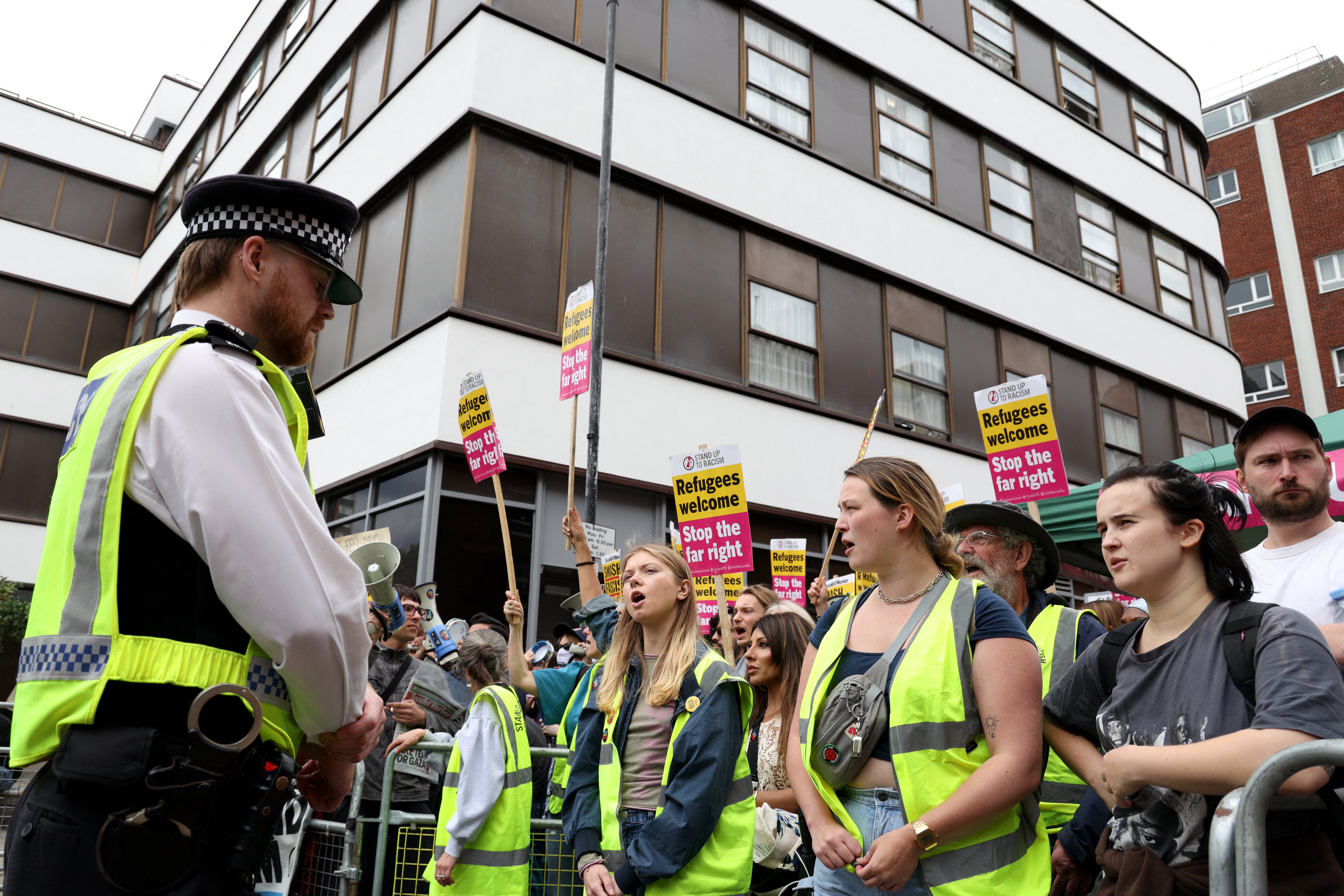 Several demonstrators were detained by officers on Saturday (2 August) after clashing with rival groups at a protest against the use of the Thistle City Barbican Hotel in Islington, north London, to accommodate asylum seekers.